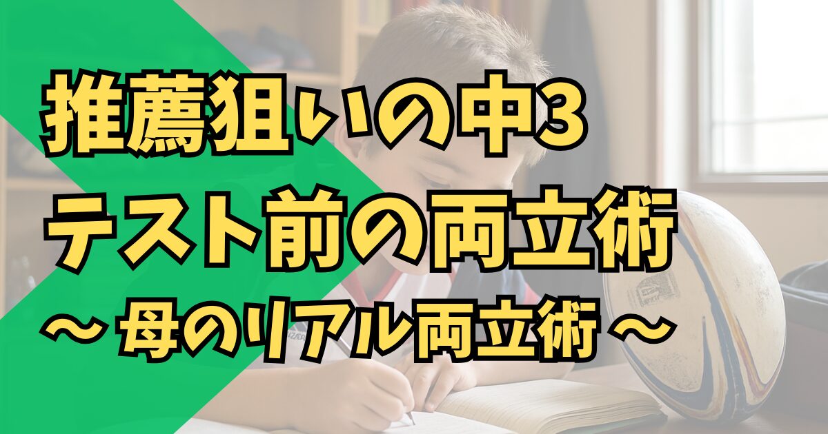 この記事では、ジュニアラグビー選手として本気で競技に取り組みながら、推薦という目標を持つ中3の「テスト前の両立戦略」を、母目線でリアルにお伝えします。